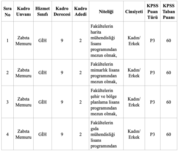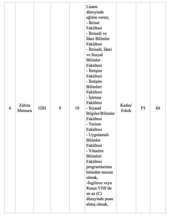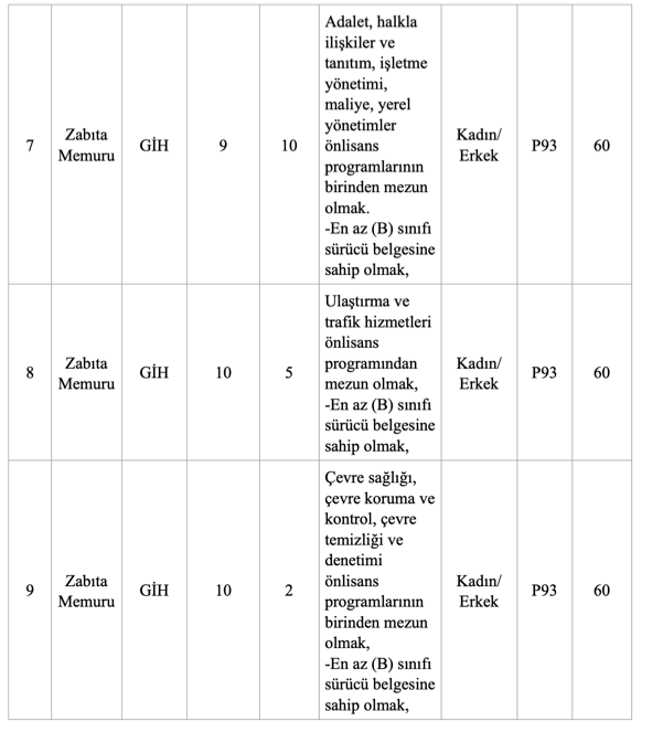 - 17 Ön Lisans Mezunu Zabıta Memuru,