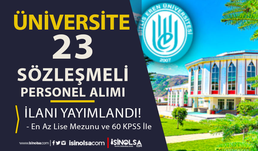 Bitlis Eren Üniversitesi personel alımı ilanı yayımlandı. Az Önce yayımlanmış olan sözleşmeli personel alımı ilanı ile Bitlis Eren Üniversitesi bünyesindeki eksikliği karşılamak üzere lise, ön lisans ve lisans mezunu adaylar içerisinden sözlşemeli personel alımı gerçekleştirecek. Söz konusu yayımlanan ilana göre alımlar herhangi bir Mülakat yapılmaksızın 4/B kapsamında gerçekleştirilecektir.