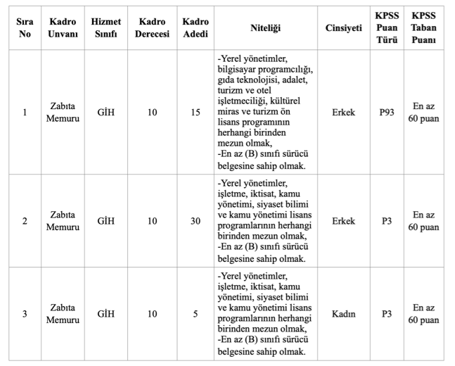 - Ön Lisans mezunu 15 Erkek Zabıta memuru alınacak,