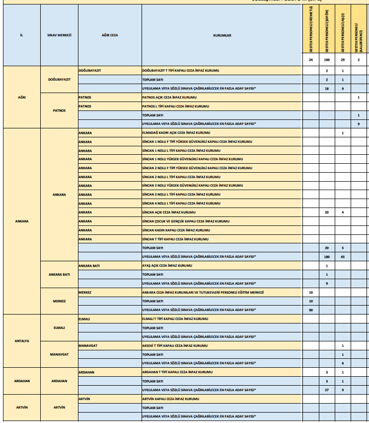 Adalet Bakanlığı Ceza ve Tevkifevleri Genel Müdürlüğü 2025 yılı kapsamında 185 Destek personeli alımı gerçekleştirecek. En az lise, ön lisans ve lisans mezunu adaylar arasında olmak üzere 5 fakrlı alanda Destek Personeli alımı yapılacak.