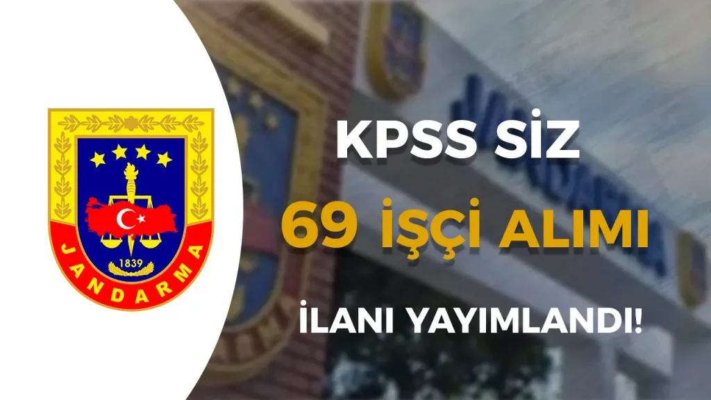 Jandarma Genel Komutanlığı 69 işçi aımı başvurusu için süreç ilanın yayımlanması ile birlikte başlamış olup en geç 6 gün içeriside başvuruların yapılmış olması gerekmektedir. Adaylar başvurularını sadece İŞKUR üzerinden alacaklar.