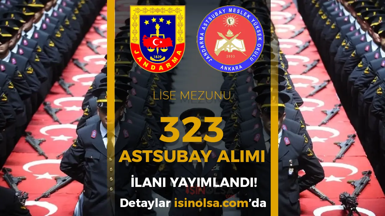Jandarma Genel Komutanlığı yayımladığı kılavuz kapsamında Bünyesindeki eksikliği karşılamak üzere Muvazzaf Astsubay alımı yapacak. Bu kapsamda 323 Kadın Erkek Öğrenci alımı yapılacaktır. Kontenjan dağılımı ise;
