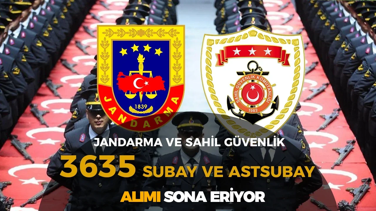 Jandarma ve Sahil Güvenlik 3635 subay alımı ve astsubay alımı başvurusu sona eriyor. Söz konusu olan ilana göre Askeri birimlerde görevlendirilmek üzere 2026 yılı Subay Alımı ve Astsubay Alımı yapılıyor. Toplamda 3635 kişilik kadro ile çeşitli alanlarda Subay Astsubay alımları yapılacak.