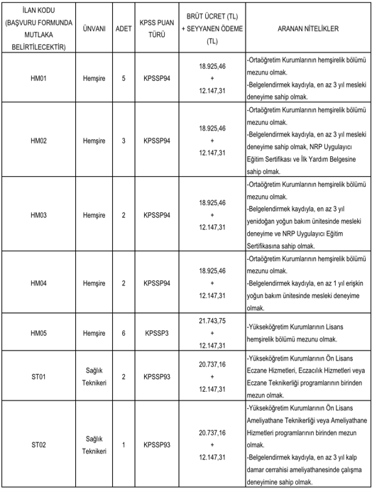 Lise Mezunu: 12 Hemşire, 1 Boyacı, 1 Sıvacı, 1 Fayanscı, 2 Temizlik Personeli,