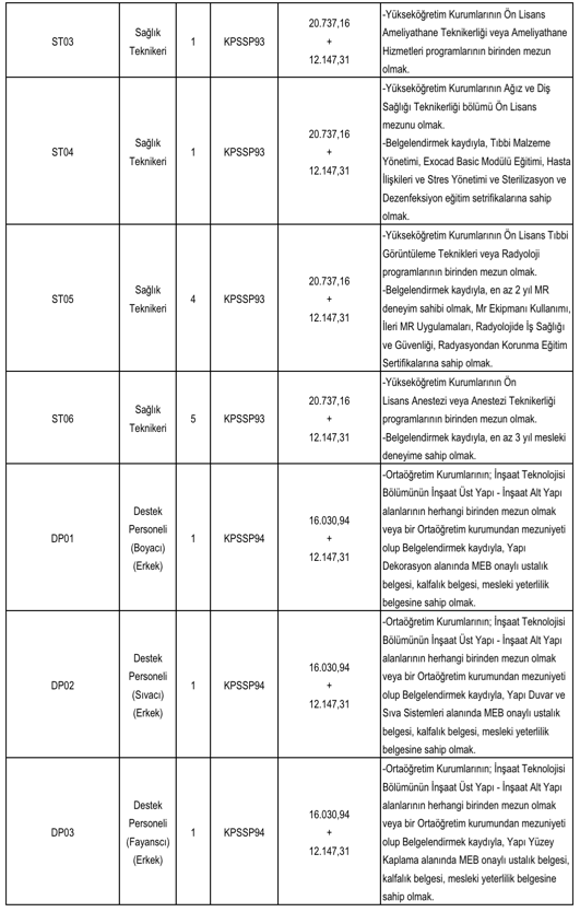 2022 yılında yapılmış olan KPSS’den Lise için P94, Ön Lisans için P93 ve Lisans için P3 puan türünden en az 50 puan almış olmak gereklidir.