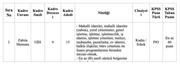 Zabıta Memuru Alımı Kontenjan Bilgisi Nedir?