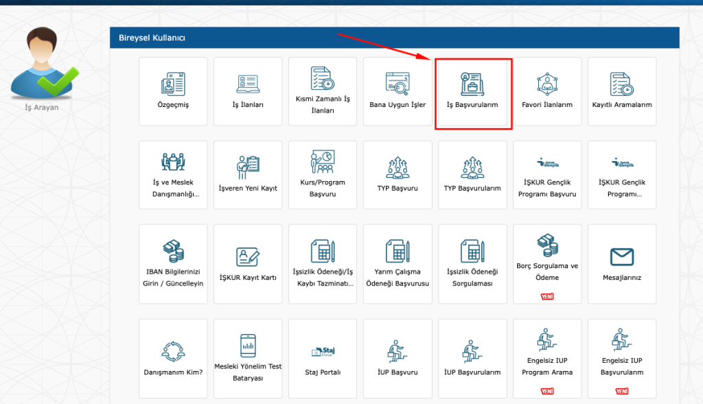 1.ADIM: Adayların ” https://esube.iskur.gov.tr/ ” adresine giriş yaptıktan sonra, karşımıza gelen menüde ” İş Başvuruların ” bölümüne tıklayınız.