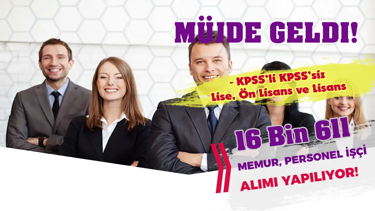 Kamu kurum ve kuruluşlarında istihdam edilmek üzere 16 bin 611 memur ve personel alımı yapılacak. İlgili duyuru bugün yayımlandı ve farklı bakanlıklar, belediyeler, üniversiteler ile kamu kurumlarına alınacak adaylar için kontenjanlar netleşti.