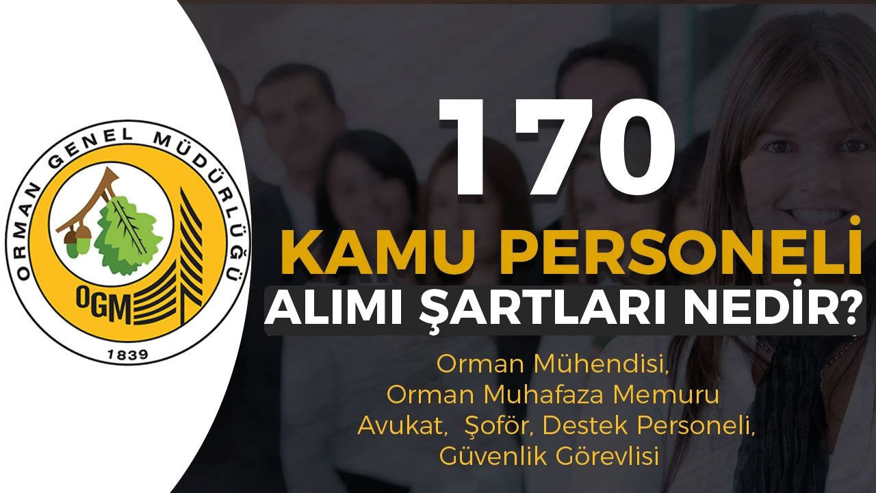 Tarım ve Orman Bakanlığı Orman Genel Müdürlüğü bünyesine 170 Kamu personeli alımı kapsamında Orman Mühendisi, Orman Muhafaza Memuru, Avukat, Şoför, Destek Personeli, Güvenlik Görevlisi kadrolarında Merkez ve Taşra Teşkilatı birimlerinde görevlendirilmek üzere Sözleşmeli Kamu Personeli alımı yapılacak.
