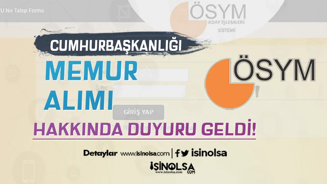 Ölçme, Seçme ve Yerleştirme merkezi başkanlığından az önce gelen duyuruya göre Cumhurbaşkanlığı memur alımı için sınav duyurusu ve sonuç duyurusu geldi.