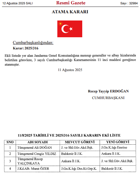 RESMİ GAZETE ATAMA KARA