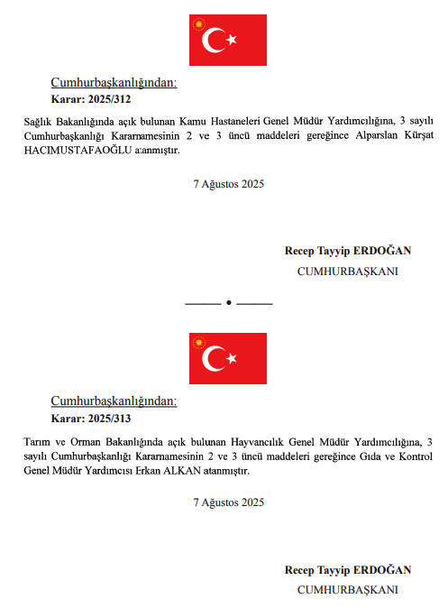 Resmi Gazete Atama Kararı yayımlandı. Az Önce Resmi gazetede yayımlanmış olan atama kararına göre Önemli atamalar yapıldı.