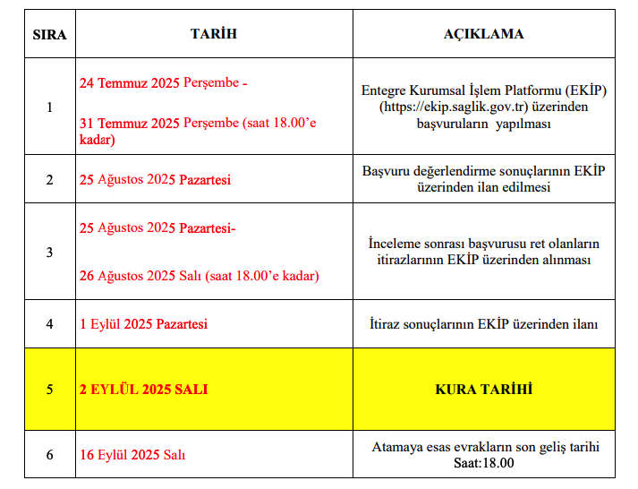Sağlık Bakanlığı İstifa sonrası atama kararı ile başvurular 24 temmuz 2025 tarihi ile başlayacak olup en geç 31 Temmuz 2025 tarihine kadar başvuru alınacaktır.