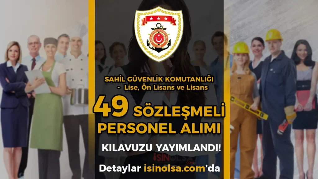 Sahil Güvenlik Komutanlığı 49 Sözleşmeli personel alımı ilanı yayımlandı. 2025 yılı için yayımlanan ilan kapsamında Resmi Gazetede 9 Mayıs 2025 tarihli gelmiş olan duyuruya göre çeşitli şehirlerde ve kontenjanlarda 49 personel alımı yapılacak. Personel alımı için KPSS puanlığı üstün olacak.