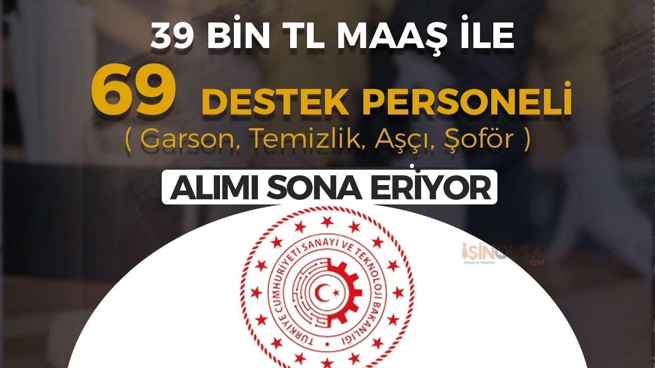Sanayi ve Teknoloji Bakanlığı Destek Personeli alımı Merkez Teşkilatına 58 ve Taşra Teşkilatına 11 Destek Personeli alınacak. Bu kapsamda;