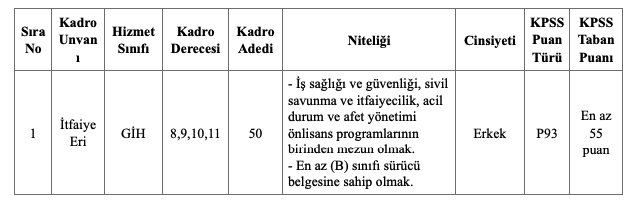 Söz konusu İtfaiye eri alımında ilanda da belirtildiği gibi sadece Erkek adaylardan başvuru alınacaktır.
