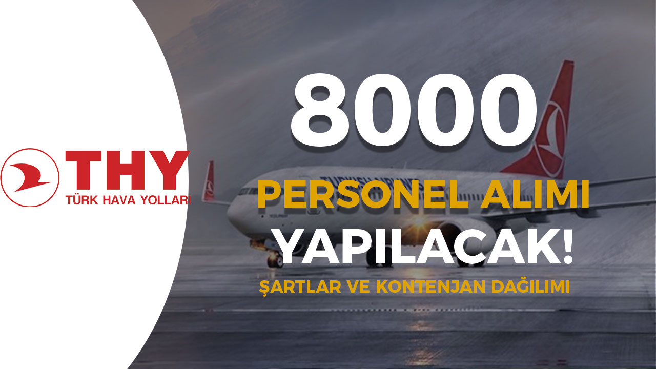 Türk Hava Yolları en az lise mezunu adaylar içerisinden 8 bin personel alımı yapacak. Başvuru için süreç başlıyor. Çeşitli kadrolarda personel alımı kontenjan dağılımı ve başvuru şartları için bilgileri İşin Olsa ekibi olarak sizlere aktaracağız.
