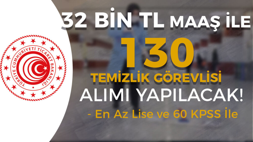Ticaret Bakanlığı 2024 yılı personel alımı ilanları yayımlandı. Lise Mezunu ve 60 KPSS Puanı ile Kadın Erkek Temizlik Görevlisi alınacak. Başvuru şartları ve diğer bilgileri sizlerle paylaşacağız.