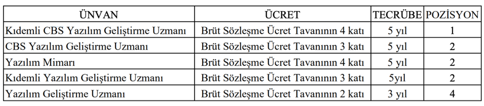 TKGM bünyesine ” Kıdemli CBS Yazılım Geliştirme Uzmanı, CBS Yazılım Geliştirme Uzmanı, Yazılım Mimarı, Kıdemli Yazılım Geliştirme Uzmanı, Yazılım Geliştirme Uzmanı ” kadrolarında yapılacak. Buna göre;