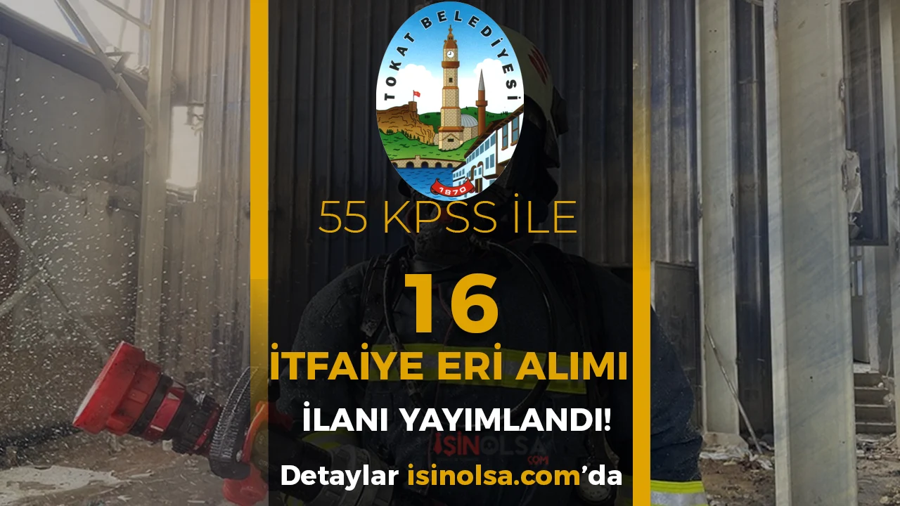 Tokat Belediyesi memur alımı yapacak. 2026 yılı için ilan yayımlandı ve Ön Lisans ve Lisans mezunu en düşük 55 KPSS ve 60 KPSS puanı ile İtfaiye Eri Alımı gerçekleştirilecek.