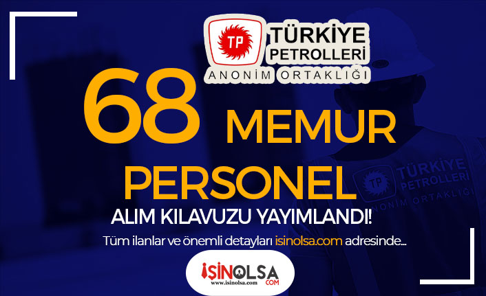 TPAO yayımladığı duyuruay göre 68 kamu personeli alımı ve Memur Alımı yapacak. Alımlar Çeşitli alanlarda Mühendis ve Uzman Yardımcısı kadrolarında yapılacak. Buna göre Türkiye Petrolleri Anonim Ortaklığı bünyesine;